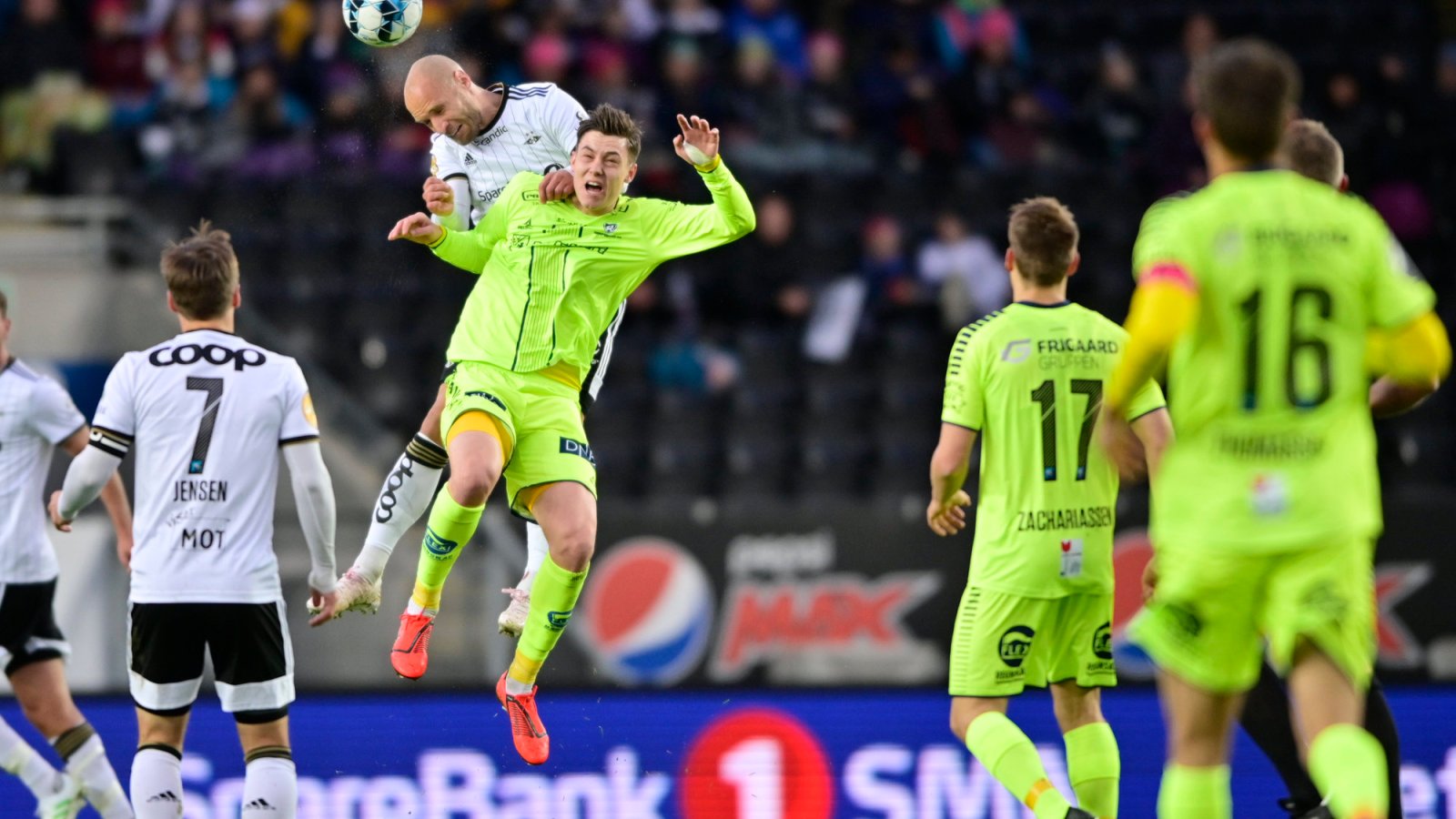 Innleggene trengte ikke komme fra cornerflagget for å bli skumle. Et frispark utenfor kanten av 16-meteren gikk inn i en klynge av spillere, og vår sisteskanse fikk en hånd på ballen før Thomassen fikk klarert.