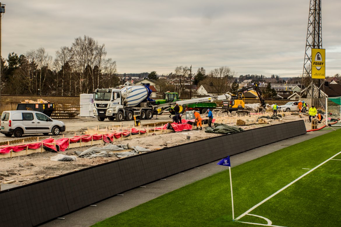 Målet er å ha tribunen klar til seriestart, med tak og vegger på plass til tredje hjemmekamp (2. påskedag).