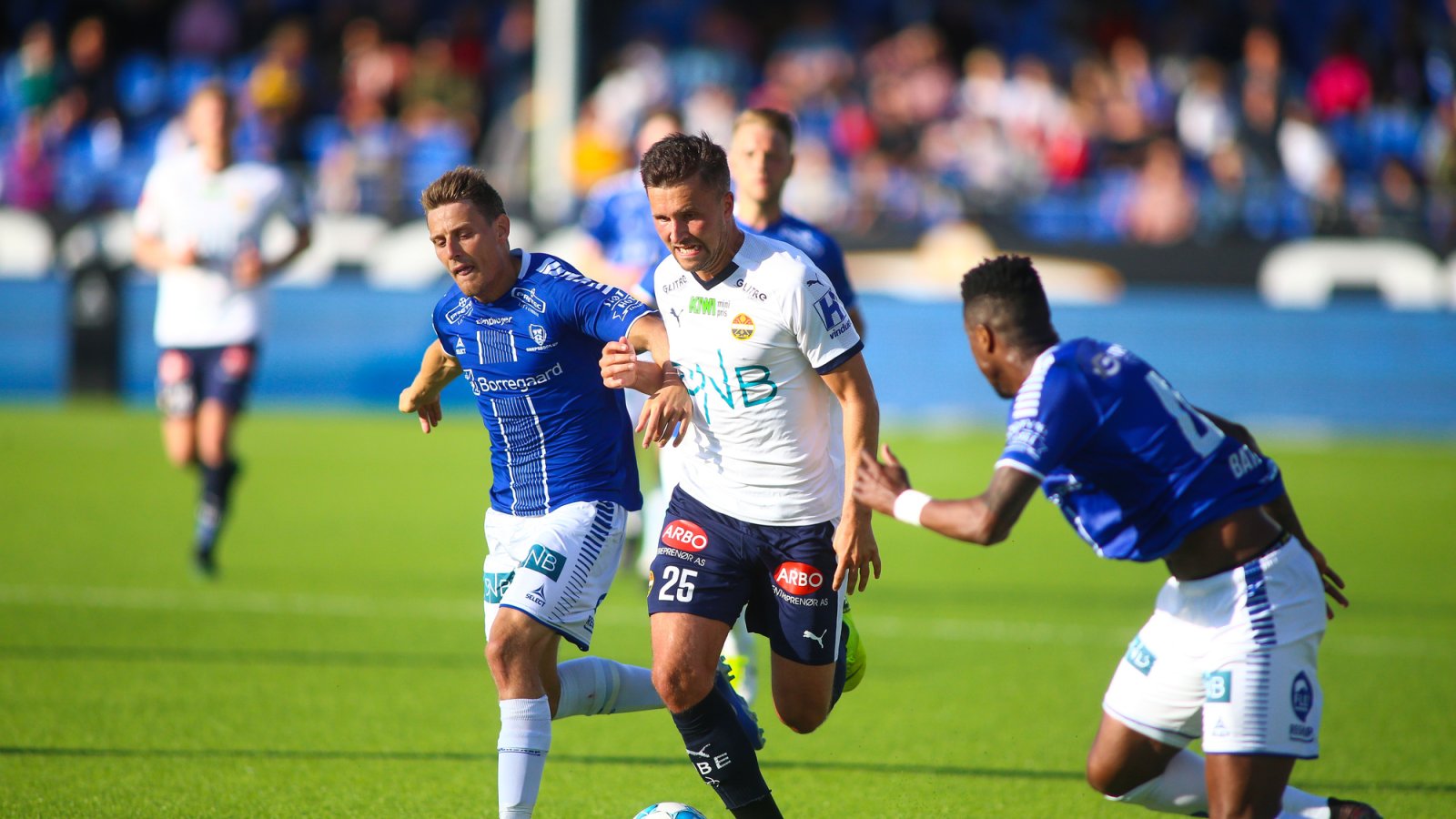 Det var et vanvittig trykk nå, både av de elleve blåhvite på banen og mer enn 5000 sarpinger på tribunen. Kristoffer Larsen hadde et farlig skudd og navnebror Zachariassen en skummel heading, men gjestenes sisteskanse leverte en solid forestilling.
