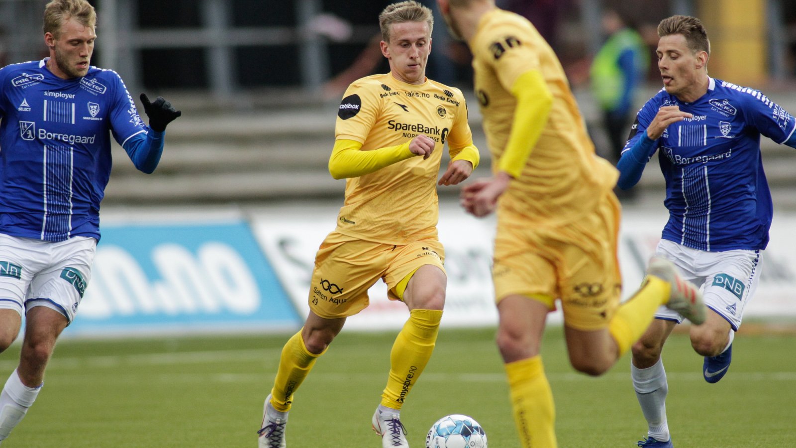 Sarpsborg 08 beholdt initiativet i kampen. Det ble blant annet farlig da Lindseth headet, og keeper måtte gi en retur som i siste liten ble klarert foran beina på Strand Larsen. Det var mye nesten på den siste tredjedelen, og de blåhvite klarte ikke å omsette noen av hele åtte cornere i første omgang i scoring. 08-spillerne, som ble skjemt bort med nydelig påskevær i solbyen, fikk tydelig erfare at sommeren ikke har kommet til Nordland. Vindforholdene spilte lagene et puss på Aspmyra.