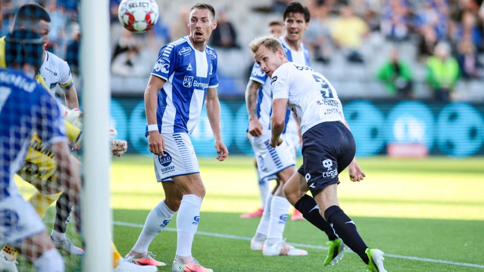 Kampen på Stadion startet jevnspilt, men Sarpsborg 08 tok raskt over taktpinnen. Med et publikum i fyr og flamme i ryggen, radet de blåhvite opp flere gode muligheter. I det 38. minutt skulle det omsider også gi uttelling. En stuss fra Ben Karamoko ble møtt av Ibrahima Koné som stanget inn 1-0.
